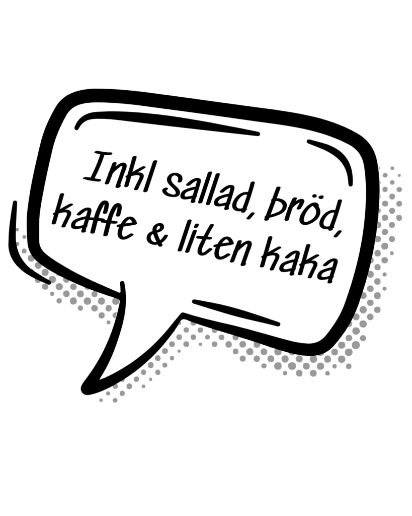 LUNCHMENY VECKANS LUNCH Förutom veckans lunchmeny serveras "Veckans street". Vi erbjuder även sallader, gyros, burgare & pizza som lunchalternativ. - VECKA 16 - VECKANS LUNCH Kl 11.00 – 14.00 115:- Pensionärspris: 95:- Barnpris 85:- Kycklingfärsbiffar serveras med fried rice & chilicremé Raggmunk med fläsk Köttgryta med smak av skogssvamp & timjan serveras med potatismos Soppbuffé: Cowboy- & linssoppa som avslutas med pannkakor med sylt & grädde Långbakad fläskkarré serveras med rostad potatis, rödvinsås & frästa grönsaker VECKANS STREET Korvstroganoff serveras med ris & picklade grönsaker VECKANS STREET Korvstroganoff serveras med ris & picklade grönsaker SE FLER AV VÅRA PIZZOR & GYROS SE FLER AV VÅRA HAMBURGARE SE FLER AV VÅRA SALLADER FÖLJ OSS PÅ